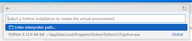 stands for Virtual Environment, which is a tool used to create isolated environments for Python projects. This helps manage dependencies and avoid conflicts between different projects that may require different versions of Python or different packages.Choose a specific python interpreter for your environment: