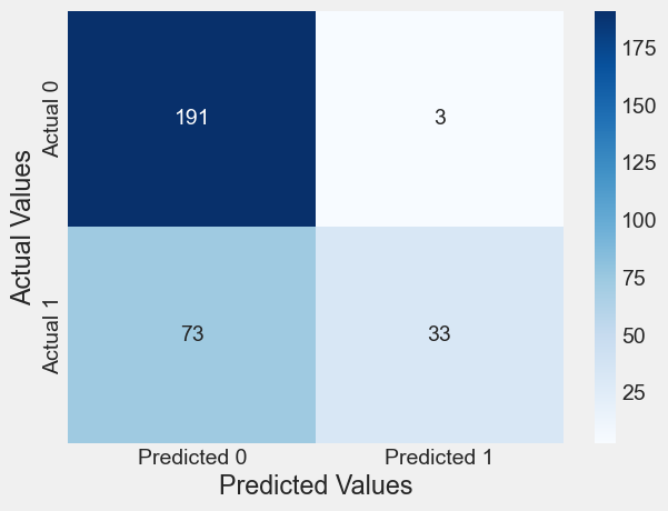 cm_df.columns = ['Predicted 0','Predicted 1']