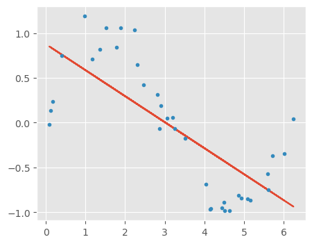 plt.plot(X_train[:, 0:1], y_train, '.');Training Error 0.22398220582126424
