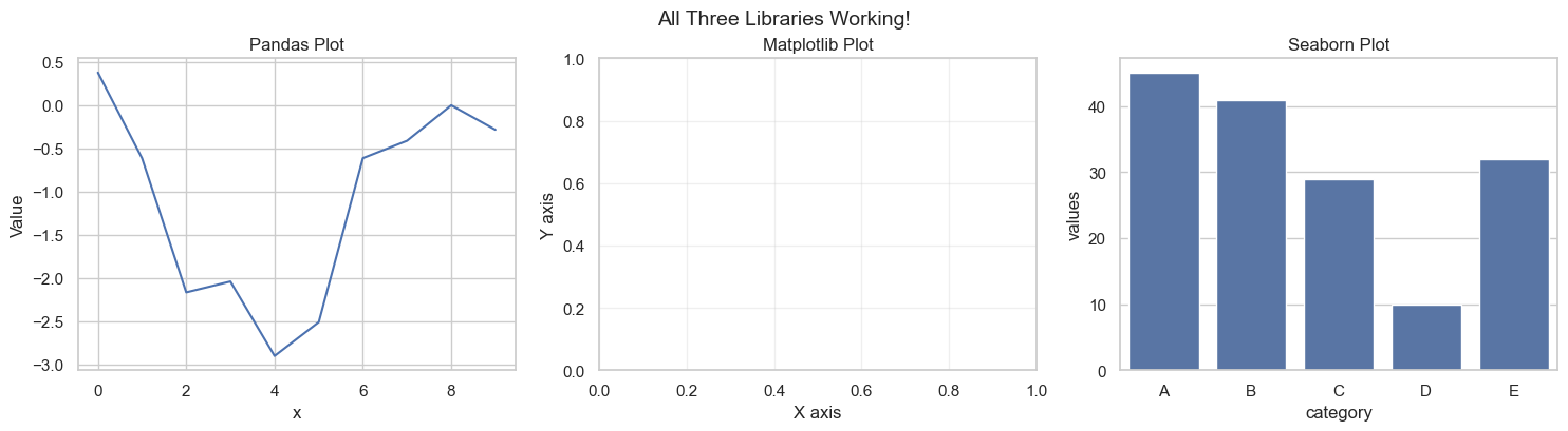 Python offers a rich ecosystem of visualization libraries, each designed for specific purposes. In this course, we’ll focus on three fundamental libraries that form the foundation of data visualization in Python.