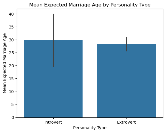 Make a visualization that compares the mean expected_marriage_age of introverts and extroverts (use the variable introvert_extrovert). What insights do you obtain?